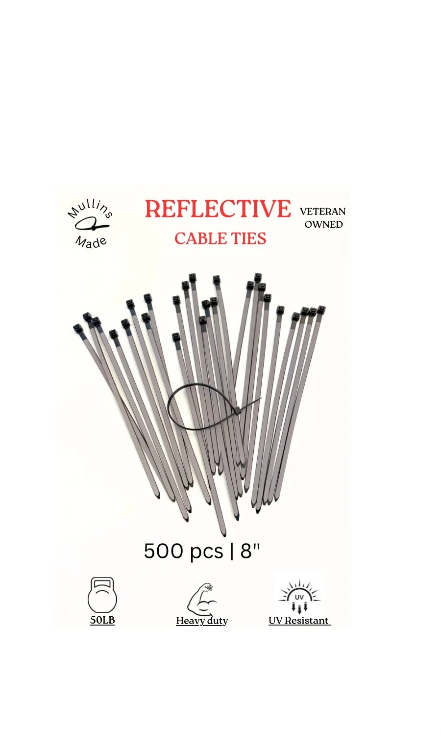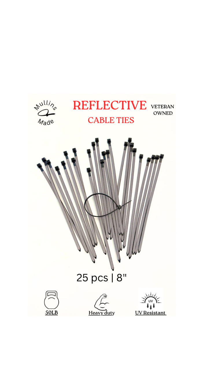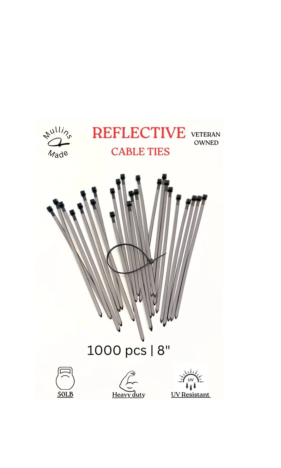 Reflective Cable ties Reflective cable ties 25-count $11.89 Add to Cart - Free Shipping Reflective cable ties 50-count $19.89 Add to Cart - Free Shipping Reflective cable ties 100-count $36.49 Add to Cart - Free Shipping Reflective cable ties 250-count $82.49 Add to Cart - Free Shipping Reflective cable ties 500-count $157.00 Add to Cart - Free Shipping Reflective cable ties 1000-count $320.00 Add to Cart - Free Shipping Contact MullinsMade LLC Mullinsmade@yahoo.com (843)442-6584